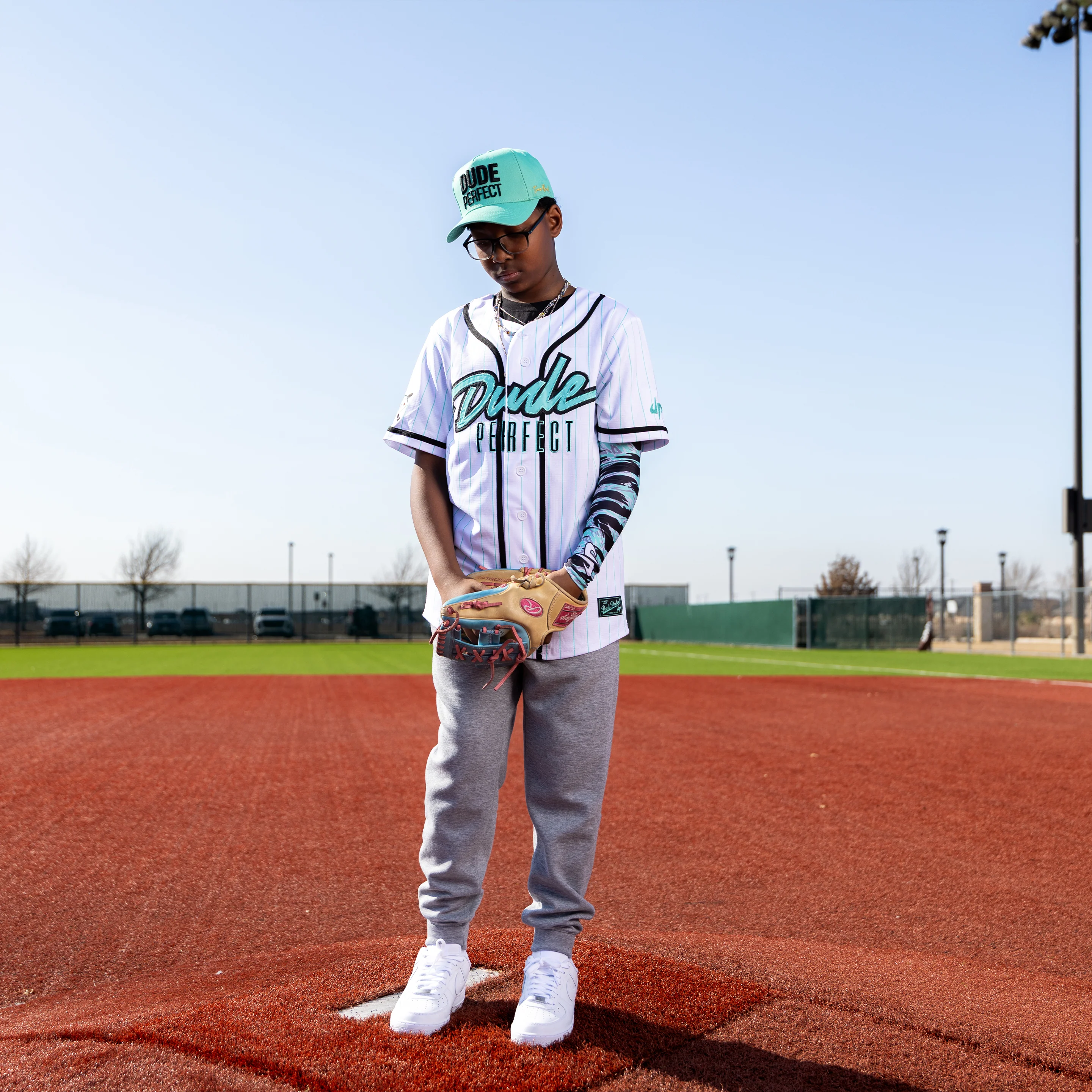 Step up to the plate with the authentic DP home team jersey. This crisp white jersey features bold Mint pinstripes and a premium textured chest patch for that authentic big-league feel. Detailed with clean black piping, a classic button-front, and custom-woven labels and embroidered patches, this jersey is engineered for both the dugout and the trick shot arena. Lightweight, breathable, and built for game day—it’s your All-Star uniform for the season ahead.